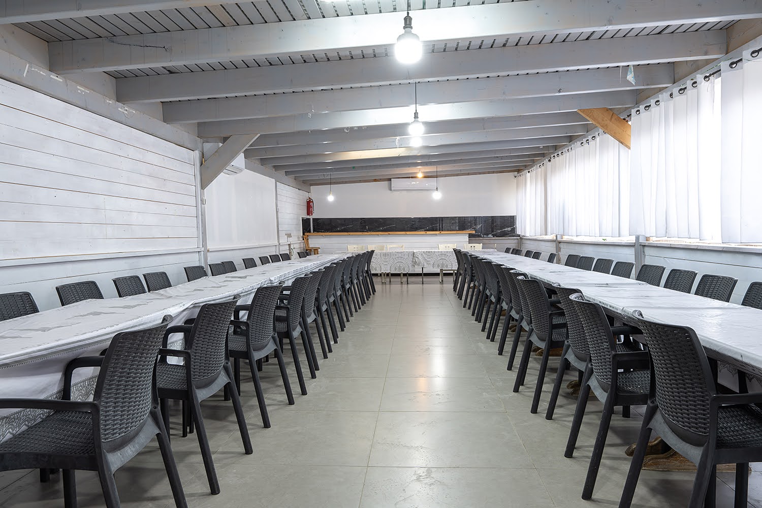 המתחם מעניק מענה מלא לכל צרכי השבת: קיים בית כנסת פרטי ומעוצב לנוחות המתפללים, וחדר אוכל מרכזי המכיל עד 80 סועדים, המותאם לסעודות שבת חגיגיות. אנו מספקים גמישות מלאה להזמנת קייטרינג כשר מכל הסוגים, עם שירותי מלצרות מקצועיים. המטרה שלנו היא לאפשר לכם להתפנות לחלוטין לשמחה ולמנוחת השבת, ללא דאגות תפעוליות.